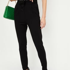 Exude an air of sophistication in this pair of trousers. It features a partially elasticated waist with a drawstring closure, a pleated front, back welt pockets, and a full-length profile. Style this pair with a blouse and team it up with pumps for an elevated style.