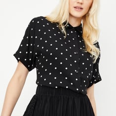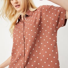 Vamp up the casual vibe in this polka-dot printed shirt. Featuring a spread collar with a full button placket, half sleeves, and a straight hem perfect for any occasion.