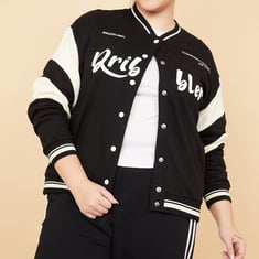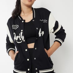 Women Printed Boxy Fit Varsity Jacket