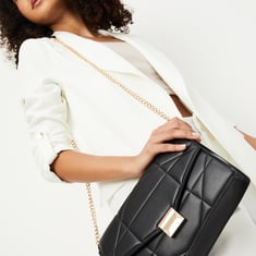 This quilted envelope sling bag brings chic sophistication to your accessory game, featuring a stylish snap button closure and a sleek strap with chain detailing. Compact yet elegant, it's perfect for adding a touch of glamour to any outfit.