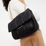 Accessorize your outfit with this stylish sling bag. Featuring a quilted flap and a chain-detailed strap, it combines elegance with practicality. The magnetic button closure ensures easy access, while the main compartment with a slip pocket provides ample storage for your essentials.
