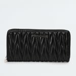 Keep your essentials organized in style with this wallet, featuring a quilted design, a zip closure, three main compartments, an internal zip pocket, and multiple card slots.