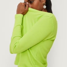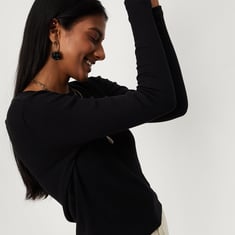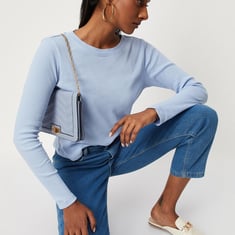Add a chic twist to your everyday wardrobe with this T-shirt. It features a rib knit design, a round neckline, and long sleeves. Pair this tee with jeans and sandals for an elevated casual look.
