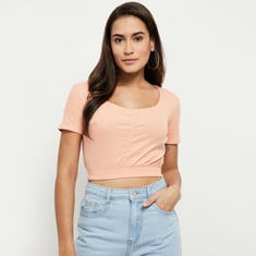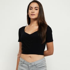 Women Ruched V-Neck Crop Top