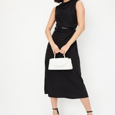 Turn heads in this sleek, solid midi dress that’s all about effortless style! With its sleeveless design, flattering cowl neck, and belted waist, this dress gives you that perfect mix of chic and comfy vibes.