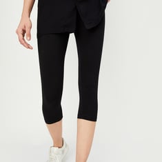 Elevate your essentials with these calf-length leggings, boasting a solid surface and an elasticated waistline. They count as a stylish staple for any wardrobe, offering comfort and versatility.