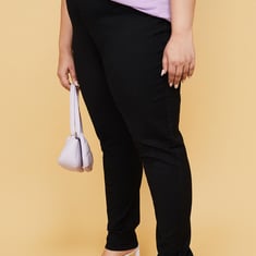 This pair of solid jeggings with an elasticated waist and a five-pocket design is a must-have for every wardrobe. Style it with a printed t-shirt for a dapper look.