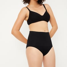 This solid high-waist panty offers full coverage and a smooth, comfortable fit. The high-rise design provides extra support, making it perfect for everyday wear or under fitted clothing.