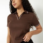 Keep it casual yet polished with this solid Johnny collar T-shirt, designed with contrast stripes at the sleeves and collar for a sporty touch. Crafted from soft fabric, it ensures all-day comfort and style.