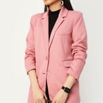Slay in this solid blazer is tailored with a notched lapel, open front, full sleeves, and waist pockets. Layer it up with trousers and a blouse to complete the look.