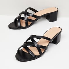 Give your look a classy twist with this pair of heels detailed with open-toe detailing, a solid surface, and an easily secured fastening.
