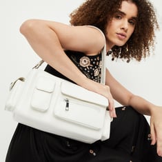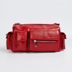 Elevate your accessory game with this solid shoulder bag. Designed for both style and functionality, it features two front pockets and two side pockets for easy access to your essentials. The spacious main compartment with a secure zip closure keeps your belongings safe, while the sturdy carry handle ensures comfortable wear.