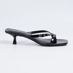 Step into comfort with these strappy kitten heels offer a chic and feminine look, featuring delicate straps that enhance the sleek design. The buckle strap ensures a secure fit while adding a touch of elegance.