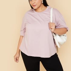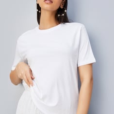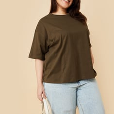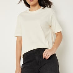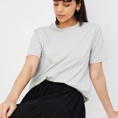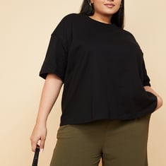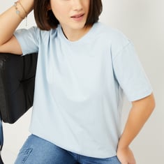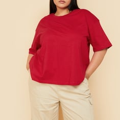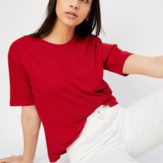 Upgrade your fashion effortlessly with this stylish T-shirt featuring a sleek solid surface, a round neck, and comfortable half sleeves, this versatile piece is perfect for any occasion. Model Size :