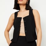 This solid buttoned sleeveless waistcoat top with a square neck is the perfect blend of classic and modern style. The button detailing adds a chic touch, while the square neck design offers a flattering silhouette.