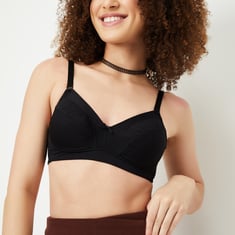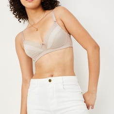 This striped bra features a hook and eye closure and adjustable straps, ensuring a comfortable, customizable fit. The intricate design adds a touch of elegance while providing all-day support.