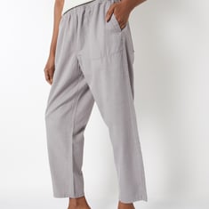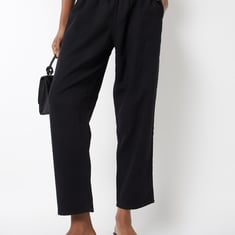 Step into everyday comfort with these textured peg crop trousers, featuring an elasticated waist and practical pockets. The tapered silhouette offers a smart yet relaxed fit.