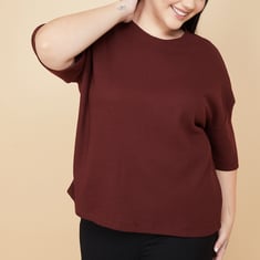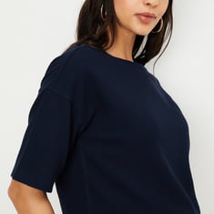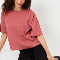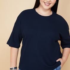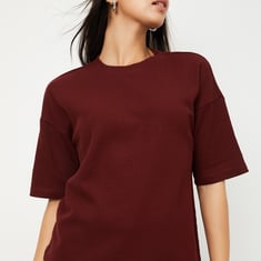 Elevate your everyday look with this textured t-shirt. Designed with a classic round neck and drop-shoulder half sleeves, it combines comfort and style seamlessly. The fabric adds a unique touch, making this T-shirt perfect for casual outings. Model Size :