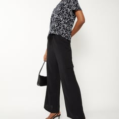 Utility meets comfort in these textured wide leg cargos, designed with a relaxed silhouette, adjustable drawstring waist, and spacious pockets. Model Size :