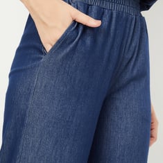 Step out in comfort and style with these Jeans. Designed with an elasticated waistband for a perfect fit, these jeans offer effortless ease. The wide-leg silhouette creates a trendy look, while the convenient side pockets add functionality.