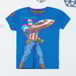 Let your little one show off their superhero spirit with this Captain America print t-shirt! Featuring a bold graphic, half sleeves, and a classic crew neck, it’s the perfect way to add a touch of adventure to their wardrobe.