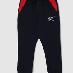 Comfort meets style in this pair of joggers with colourblock panels. It is designed with a drawstring waist, slant pockets, a back patch pocket, and ribbed cuffs.