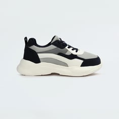 Achieve a sporty and stylish look with these colour-blocked shoes featuring a mesh upper, lace-up closure for security, chunky outsole for durability, cushioned insole for comfort, and a durable outsole with patterns for a secure grip. Ideal for athleisure wear, these shoes combine functionality with trendiness.