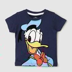 Add a playful touch to his wardrobe with this T-shirt. Featuring a crew neck and half sleeves, the Donald Duck graphic print lends a nostalgic and striking look.