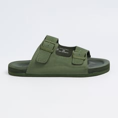 Step up his footwear game with these double-strap sandals, designed with a secure buckle closure for a customizable fit. Perfect for warm days, these sandals offer comfort and style, making them an essential addition to his casual wardrobe.