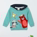 Add a dash of fun to her day with this T-shirt. The hooded neck, full sleeves, and ribbed trim give a cosy look. The cute puffed graphics with appliques lend a playful look.