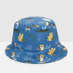 Liven up his summer outfits with this bucket hat. It features animal prints on the exterior and an elastic panel on the interior for a snug fit.