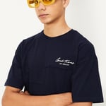 Build his basic wardrobe with this T-shirt. It is updated with a crew neck, drop shoulders, and half sleeves. The cut and sew detailing along with HD print at the chest complete the look.