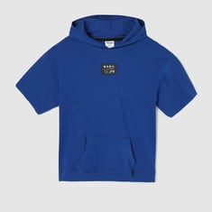 Get your little one ready for vacation with this comfy and stylish solid-surface T-shirt. Featuring half sleeves, a kangaroo pocket, and a hooded neck, it’s the perfect pick for laid-back adventures.