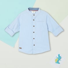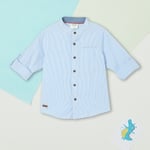 Let your child be stylish and comfortable with this casual striped shirt. Featuring a band collar, full sleeves with roll-up tabs, and a welt pocket, it combines classic design with practical details for a versatile and trendy look.