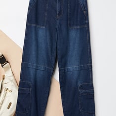 Upgrade kids' casual style with these washed cargo jeans, offering a cool, relaxed vibe. Featuring a button closure and belt loops for a customizable fit, plus side, back, and cargo pockets for extra practicality. The washed finish adds a worn-in, effortless charm—perfect for everyday adventures.