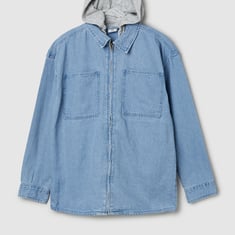 Boys Washed Hooded Denim Shirt