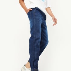 Stay comfy and stylish with these jogger jeans, featuring an elasticated waist and drawstring closure for a customizable fit. With both front and back pockets, they combine the convenience of joggers with the classic look of denim.