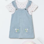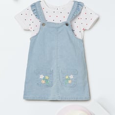 Girls Embroidered Dungaree Dress with T-shirt