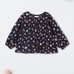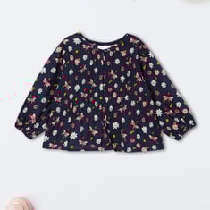 Let her style bloom with this shirt-style top. The floral and butterfly prints add an alluring flair. It is designed with a round neck, full sleeves, and a front button placket.