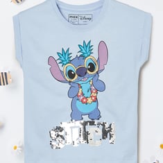This Lilo & Stitch print top brings the charm of Disney with a fun and vibrant design. Featuring a round neck and extended half sleeves, it offers a comfortable fit and playful style.