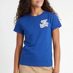 Add playful charm to her everyday look with this placement print T‑shirt, featuring a round neck and half sleeves for casual comfort.