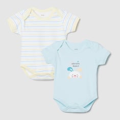 Swaddle your baby in this bodysuit set which is made of an anti-bacterial finish on the fabric. It comes with a printed surface, an envelope neckline, and ring snap closures for easy diaper changes.