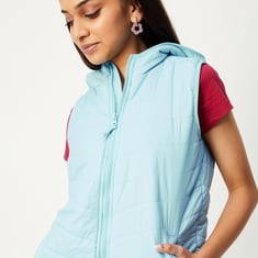 This gilet jacket is designed with a hooded neckline, sleeveless silhouette, insert pockets, and a zipper placket to enhance your child's casual appearance and get them ready for winter.