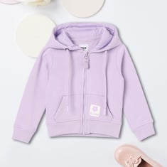 She'll stay warm and stylish with this solid sweatshirt, designed for ultimate comfort and versatility. Featuring a cosy hooded neck and full sleeves, it keeps her snug during chilly days. The convenient zip closure adds practicality, while split kangaroo pockets keep your essentials close at hand.