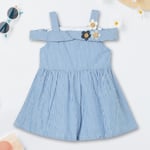Spruce up your kid’s wardrobe with this striped fit-and-flare dress. It features embellished accents, cold shoulders with a cut-out detail, and a button closure at the back for a chic and playful look.