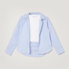 Create a stylish layered look with this striped shirt and tee combo. The shirt features a classic spread collar, button placket, and full sleeves for a timeless, polished style. Paired with a half-sleeve round neck tee underneath, this combination offers both comfort and sophistication.
