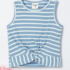 Amp up your kid's wardrobe with this striped tank top, featuring a twisted design, round neck, and sleeveless cut. It’s a stylish choice that combines playful stripes with a trendy twist.