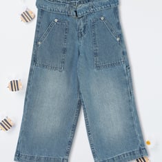 Jazz up your kid's denim wardrobe with these stylish jeans. Featuring a washed surface, a belt for a secure fit, and four pockets for added functionality, these jeans are a perfect blend of style and comfort.