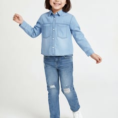 Refresh your casual staples with this washed denim shirt, designed with a spread collar, patch pockets, button closure, and full sleeves with buttoned cuffs for timeless appeal.