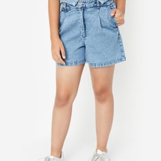 These washed denim shorts offer a laid-back vibe with a classic button closure , mid-rise, and functional pockets. The faded finish adds a cool, lived-in look perfect for casual days.
